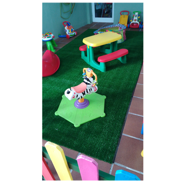 La superficie está dotada de un suelo especial para que ellos jueguen sin peligro (cubriendo una superficie total de 75 m2).